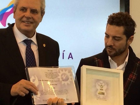 El cantante David Bisbal ya tiene un 'Sol de Oro' de Vera, después de que el consistorio entregara esta mañana en FITUR estos distintivos, tanto a él, como a otras personalidades. El stand de la Diputación Provincial en FITUR ha albergado la entrega de la distinción honorífica "Sol de Oro Ciudad de Vera" a las personalidades e instituciones que contribuyen en la promoción y dinamización turística dentro del ámbito nacional y andaluz.