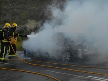 Bomberos del Levante tuvieron que acudir a sofocar el incendio que se produjo en un vehículo en la carretera AL-1102 km-7 en la zona del Molino Río Aguas en Sorbas en la tarde del pasado 4 de abril.