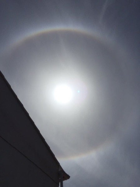 Hoy, el cielo ha regalado a la vista de ciudadanos del Levante almeriense un fenómeno tan poco habitual como espectacular, un halo solar. Varios vecinos compartían en redes y nos hacían llegar la fotografía del sol de esta mañana con una especie de aro alrededor y unos puntitos, incluso, con una forma de cruz en algún momento.
