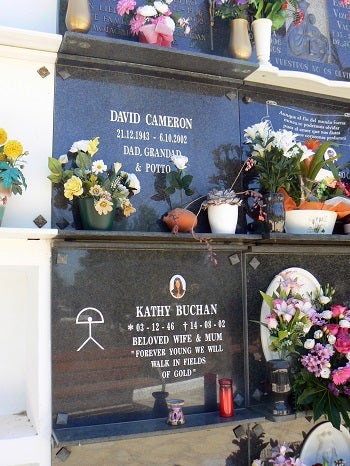 Los cementerios, al final, son lugares cargados de historias, de vidas que fueron. Y como en la vida, algunas personas que allí descansan ... parecen desprender aún parte de la esencia que las hicieron especiales, a veces, para algunos, otras para mucho, siempre para alguien. Mojácar, por ejemplo, es lugar de personajes ilustres, al menos, característicos, seguro particulares. Lo fue, especialmente hace unas cuantas décadas, y su reflejo está, irremediablemente, en su camposanto, donde muchos de aquellos que fueron admirados o destacados, quisieron pasar el resto de su eternidad. Aquellos que un día dejaron sus lugares de nacimiento y que se enfrascaron en la energía y la magia mojaquera, siguen bajo el mismo sol de entonces, ahora en el cementerio de Mojácar. El Consistorio mojaquero lo explica así: «Nunca conoceríamos del todo Mojácar si no hablamos de sus personajes, de aquellos que un día, abandonaron sus ciudades y sus países para acariciar esa libertad que el nombre de Mojácar les aseguraba. Ellos, más altos y más rubios que los mojaqueros de nacimiento, se convirtieron enseguida en referencia de un modo de vida que rápidamente dio la vuelta al mundo entre la élite del 'buen vivir' y del arte. En un lejano pueblo de la provincia de Almería, comenzaron a convivir una escasa población de andaluces agricultores con pintores, escritores, pianistas e incluso con el único torero británico que se conozca. Personajes que vivieron el descubrimiento de Mojácar, allá por los años 60 y que hoy, componen sin duda la imagen del recuerdo más cercano y no por ello menos mítico. Frederick Mooney (Fritz), Win Wells, Henry Higgins, Paul Beckett, William Napier... enterrados en el cementerio de Mojácar, donde hoy descansan en paz, bajo el mismo sol y la misma energía que un día les atrajo aquí». La tumba de Higgins hace recordar su historia. Fue el primer torero británico y quizás el último, su primer padrino fue Brian Epstein de Los Beatles. Henry, de madre colombiana, estudió el difícil arte del toreo en España y tomó la alternativa en la Plaza de Fuengirola de manos de Antonio Ordóñez, en sus carteles aparecía bajo el nombre de Enrique Cañadas y dieron la vuelta a diversos lugares de nuestra geografía, al igual que su libro 'How to be a Matador'. Dejó el arte del toreo para dedicarse a la representación de productos de importación, y finalmente, amante de las actividades de riesgo, conoció la muerte en Mojácar, al precipitarse en ala delta. Frente a él descansa, en la conocida como zona de los 'ingleses', Win Wells famoso dramaturgo que estableció casa en Mojácar durante muchos años, constituyendo también su propio teatro. Autor de obras tan importantes como 'Gertrude Stein y un Compañero', estrenada en Mojácar, antes de pasar a Broadway, dónde cosechó importantísimos éxitos y premios. Su Obra 'Cante Hondo', basada en el tema Lorca , fue igualmente un importante referente cultural. El Mariscal de aviación Purcell, héroe de la Segunda Guerra Mundial, era otro personaje inimitable que convivió en aquellos míticos años 60, así como Kate la Irlandesa, que reconocía haber sido pieza clave de la M.I. 5 ( servicio de espionaje británico) y haberse lanzado en paracaídas en repetidas ocasiones en diversas misiones peligrosas, en fuego cruzado..... Cerca , y amenizando este cementerio variopinto y multiétnico, Mike ( Solo) Connolly, líder del grupo británico 'Flying Vultures'. Además de todos ellos, de los que habla el Consistorio mojaquero, no se olvida al irrepetible William (Bill) Nappier , famoso industrial británico que terminó sus días en Mojácar, no sin antes invitar y ejercer de anfitrión en una Mojácar virgen y por descubrir, dónde un entusiasta alcalde, que hoy reposa junto a ellos, decidió un día regalar parcelas a todo aquel que en el plazo de un año construyera una casa. Aquella época, en la que se disponía de tiempo , la vida era supervivencia y juerga. Quizás, quién sabe, su descanso eterno sigue siendo tan interesante, tan intrépido, tan genial como fueron sus vidas. Lo que es seguro es que dejaron su impronta en aquellos años y que siguen y seguirán siendo recordados, gracias también al testimonio escrito que detalla todo esto, los que vivieron, los que viven, y los que descansan en Mojácar, en una publicación como puede ser 'Mojaqueros de hecho' de Francisco Haro Pérez, publicado por el Instituto de Estudios de Almería en el año 2014. Ahora todos ellos, y muchos más, conviven junto a los mojaqueros que también descansan en paz en el cementerio de la localidad.