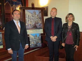 Pero, además de mantener las tradiciones de los desfiles y eventos que implica la Semana Santa cuevana, en esta ocasión se han aportado ... algunas novedades que den cierta 'frescura' a la misma. Así, por ejemplo, el arranque de la Semana Santa se adelanta, y el pregón en lugar de hacerse el Viernes de Dolores se hará el jueves 17 de marzo, en la Iglesia de Nuestra Señora de la Encarnación y correrá a cargo del sacerdote Antonio Jesús Martín Acuyo, cura durante varios años en el municipio. Modesto habló sobre el Cartel anunciador. «Es obra de la artista local Ana Sáez, que ha hecho un gran trabajo para representar la esencia de nuestra Semana Santa, en una de nuestras calles más emblemáticas como es la calle El Pilar», explicó. Por vez primera se ha hecho un óleo para que sea el Cartel de Semana Santa, ya que hasta ahora se realizaba un concurso fotográfico y se escogía una imagen, cada año de una Hermandad. En esta ocasión, se representa 'La primera caída' que Jesús efectúa en el recorrido hasta el Calvario dentro del paso viviente de La Judea cuevana. Los actos litúrgicos y los desfiles procesionales se prolongarán hasta el domingo 27 de marzo. Tanto el alcalde cuevano como el concejal de Cultura invitaron: «tanto a vecinos como a visitantes a conocer nuestra Semana Santa y disfrutar de una de nuestras fiestas con más arraigo, además de acompañar a nuestras hermandades y disfrutar de nuestro municipio, porque Cuevas tiene mucho por descubrir». La obra original del Cartel de Semana Santa, ejecutada sin ánimo de lucro por parte de Ana Sáez, será protagonista durante el día del pregón «ya que será entregado a una persona que se homenajeará durante esa noche», dijo el concejal de Cultura, sin querer desvelar más detalles del mismo. Fernández y Modesto incidieron en su agradecimiento a las hermandades de Cuevas, que consiguen hacer lucir a la Semana Santa y que hacen que todos los días de la misma haya procesiones en la localidad recordando este episodio cristiano con devoción y emoción.