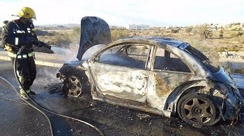 Efectivos del Cuerpo de Bomberos del Levante sofocaron ayer las llamas de un vehículo que se incendió cuando circulaba por el kilómetro 7,8 de la carretera A-352, que une las localidades de Vera con Garrucha. Según indicaron ayer fuentes del Parque de Bomberos, el suceso se produjo en torno a las 19.00 horas, cuando dos personas que circulaban a bordo de un turismo notaron un fuerte «olor a quemado» y decidieron parar la marcha. A los pocos minutos se incendió por completo. Los bomberos, que apagaron las llamas a los pocos minutos, investigan las causas del siniestro.