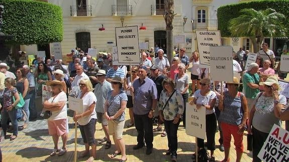 Más de un centenar de personas se dan cita en una manifestación en la Plaza Mayor de Vera para pedir que se haga justicia con el matrimonio británico al que derribaron su casa en 2008