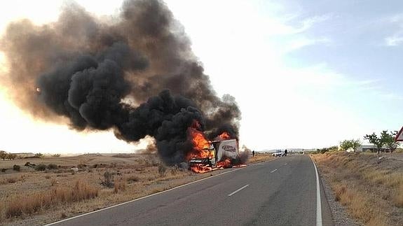 Minutos más tarde las llamas ya habían envuelto al vehículo y la gran bola de fuego era visible desde distintos puntos de la carretera. Los bomberos del Levante tardaron pocos minutos en extinguir las llamas, aunque el camión quedó totalmente calcinado. Por el momento se desconocen las causas del fuego, si bien el vehículo estaba en pruebas por algún tipo de avería, según señalaron a este periódico fuentes del Parque de Levante.