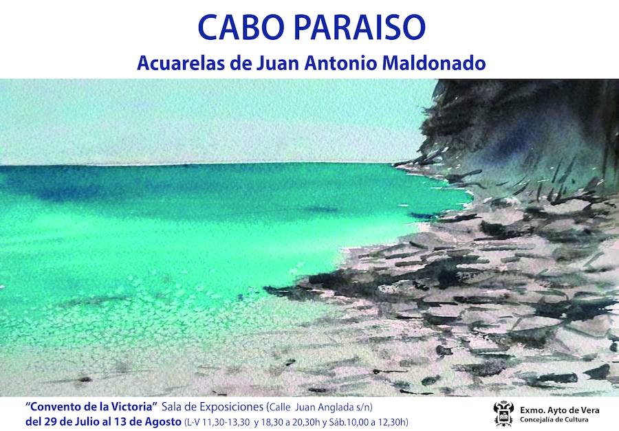 La exposición Cabo Paraíso estará del 29 de julio al 13 de agosto en la Sala de Exposiciones Convento de La Victoria, calle Juan Anglada s/n de Vera el en el horario de Lunes a Viernes de 11.30-13.00 y 18.30 a 20.30 y Sábados de Entre las obras se pueden ver paisajes rurales, distintos estudios del agua, y muchos otros motivos fijados para siempre en el papel por el pincel del artista, con una inconmensurable delicadeza.