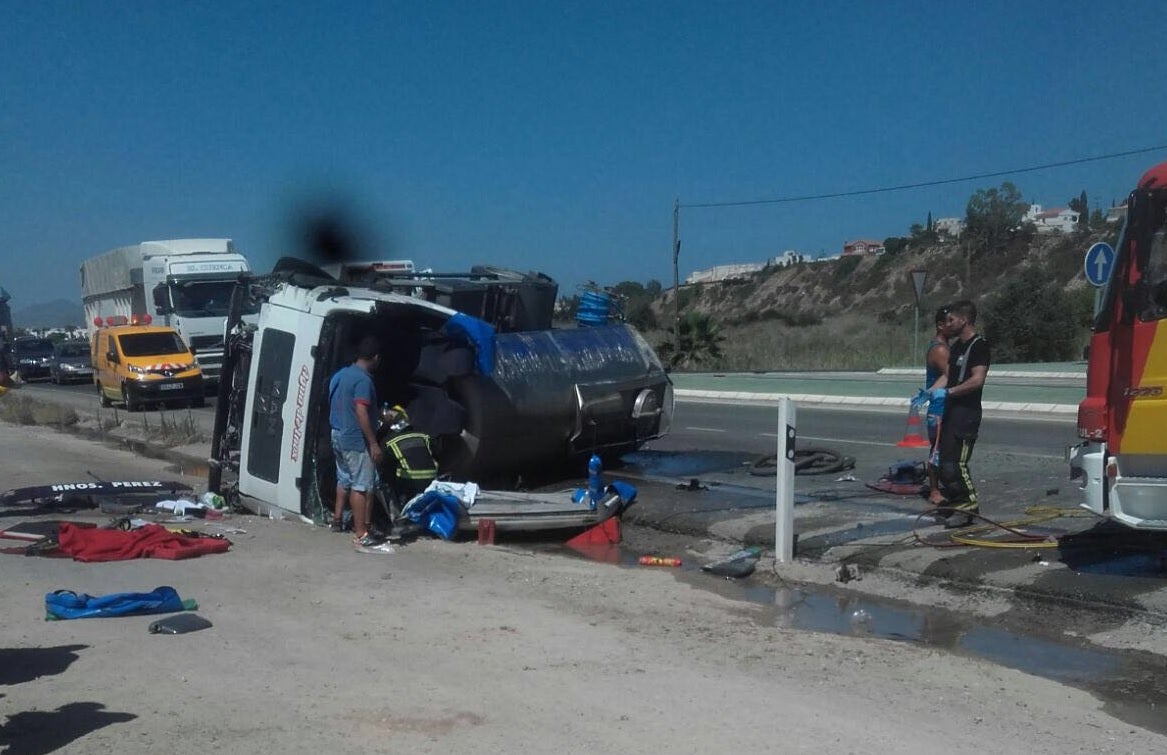 El conductor del vehículo cisterna ha tenido que ser liberado por los bomberos y trasladado al Hospital de La Inmaculada