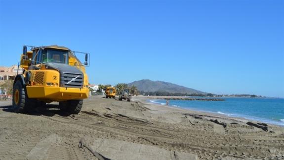 Los trabajos que se están desarrollando en el litoral contemplan aportaciones y trasvases de arena y también reperfilados de la línea de costa para frenar los daños de la erosión en estas playas almerienses.