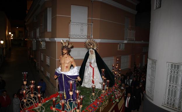 Los emotivos momentos vividos en los tramos en los que las luces de las calles se apagaron, quedando el trono iluminado por velas y hogueras, o la lluvia de pétalos de flor al paso de las Imágenes, se unieron a la principal novedad de este año, que fue una modificación en el recorrido procesional habitual para incluir una parada ante la Hermandad de Paso Negro de Pulpí. Un detalle que La Borriquita quiso tener con el Paso Negro, que este año celebra el 175 aniversario de su fundación. Recibidos por la Junta Directiva del Paso Negro, con su Hermano Mayor, Antonio Luis Muñoz, a la cabeza, los costaleros del Despojado y de la Virgen de la Salud y Esperanza dedicaron una levantá al Paso Negro y, de forma especial, a la Virgen de los Dolores.