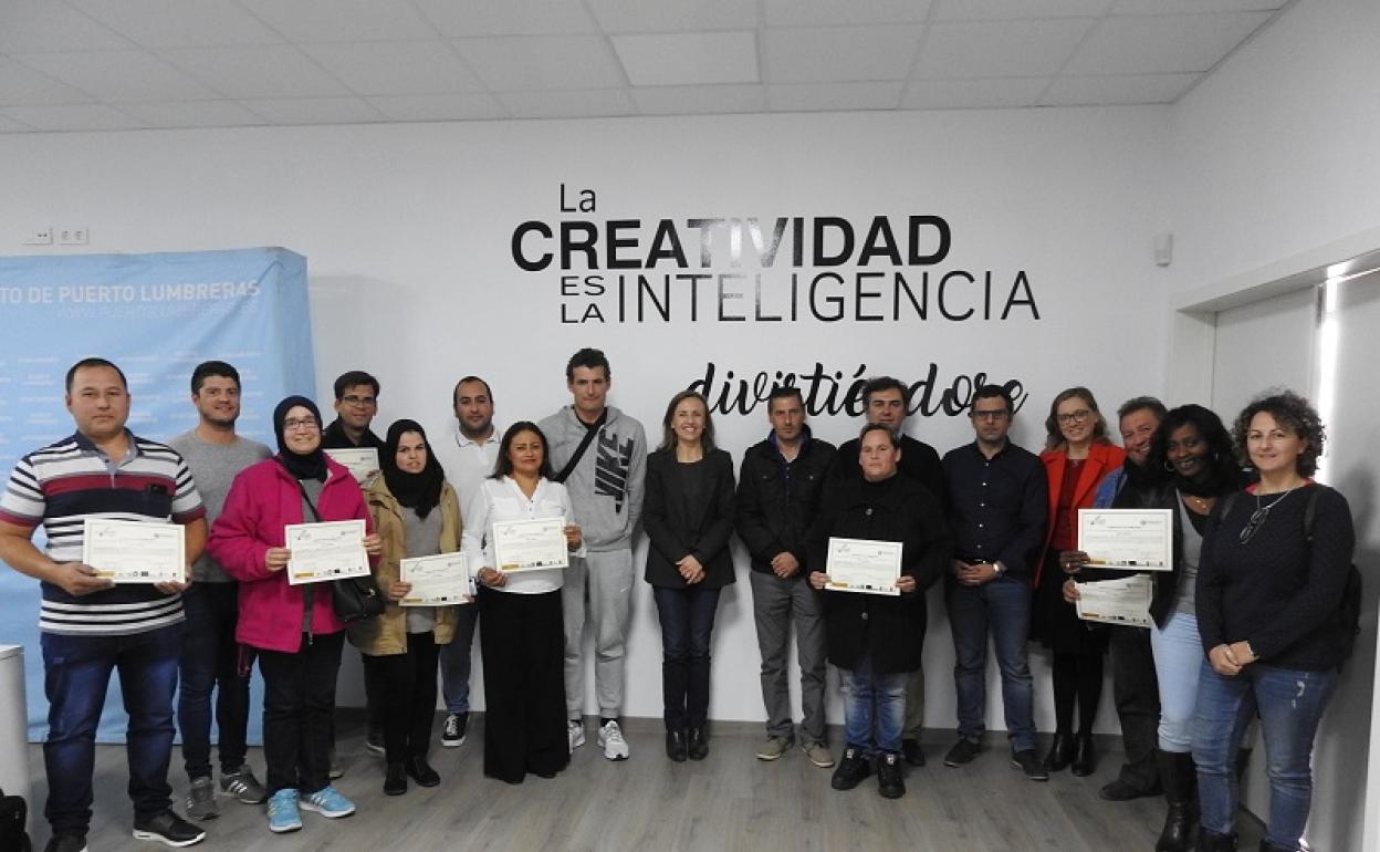 La alcaldesa de Huércal-Overa, Francisca Lourdes Fernández, y la primera edil de Puerto Lumbreras, María Ángeles Túnez, han asistido al acto de ... entrega de diplomas a los alumnos que han realizado los «Cursos Ecogreen», subvencionados por el Fondo Social Europeo, para los municipios de Puerto Lumbreras y Huércal-Overa. Con este acto se han clausurado todas las actuaciones realizadas, con 12 cursos destinados a personas desempleadas, en los que ha habido un total de 190 alumnos inscritos. El proyecto se ha desarrollado desde abril de 2019 hasta el presente mes de noviembre, y se ha conseguido que más de una veintena de personas desempleadas encuentren un empleo. La temática de los cursos ha versado sobre agricultura ecológica avanzada, uso de drones con fines agrícolas así como un uso ecológico del suelo, entre otros.