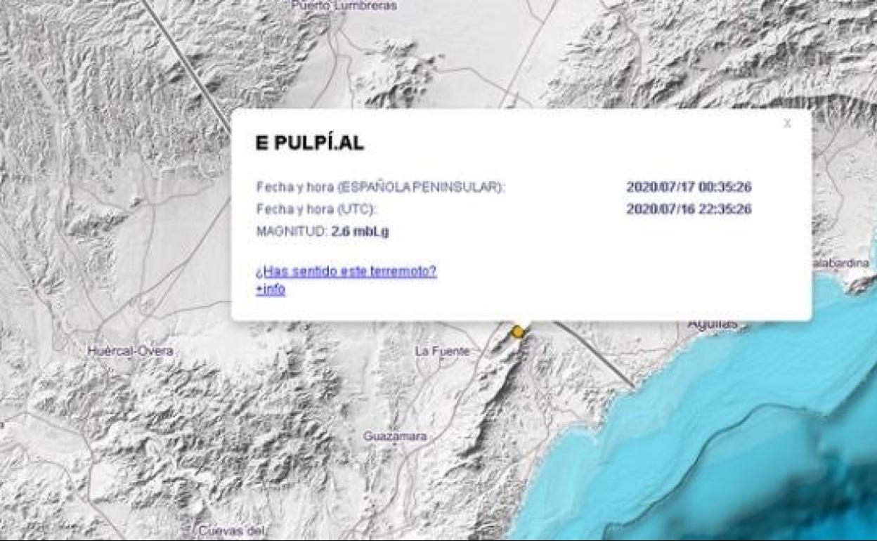 Un terremoto de magnitud 2,6 sobresalta a los vecinos de Pulpí en la medianoche