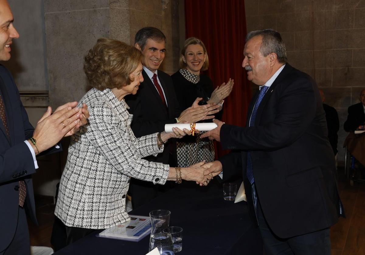 Su Majestad, la reina emérita presidió la entrega de los Premios Hispania Nostra y Europa Nostra de las convocatorias de los últimos tres años a 19 proyectos de recuperación de patrimonio cultural y natural, y además fue la encargada de hacer entrega del galardón al regidor.