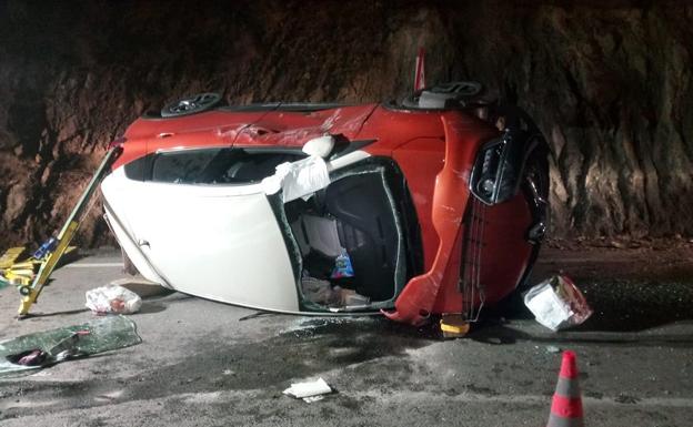 En el accidente tan solo estuvo involucrado un vehículo, que se salió de la vía y se golpeó contra la montaña lo que produjo que se quedara volcado lateralmente con su conductor atrapado en el interior.