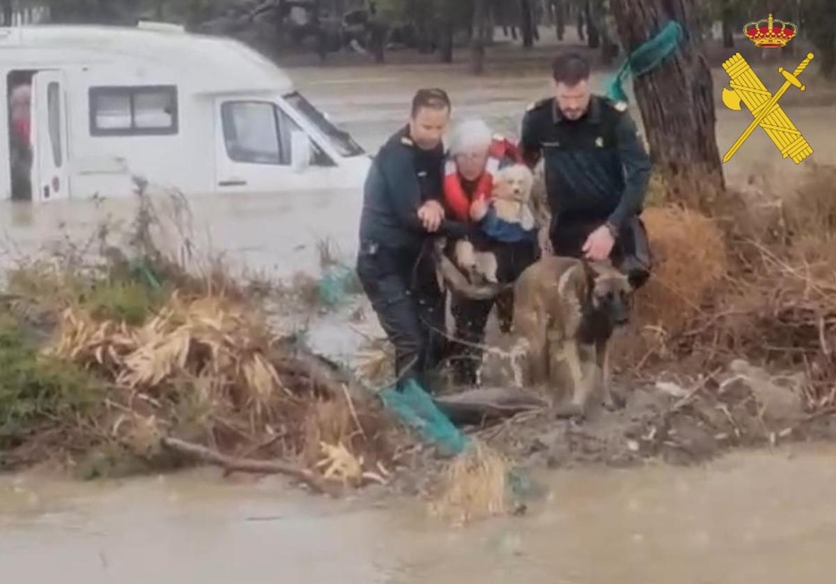 La Guardia Civil ha rescatado a dos ancianos, de 78 y 79 años, ambos de nacionalidad extranjera, que habían quedado atrapados en el interior de ... su caravana junto a sus dos perros tras ser sorprendidos por una riada en la playa de Quitapellejos, en Cuevas del Almanzora.