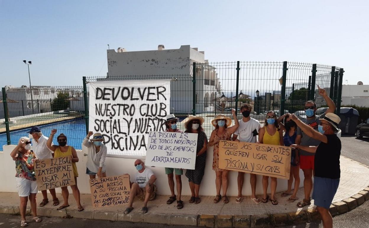 Por este motivo, los propietarios, que han visto negado el acceso a la piscina y a otras zonas comunes, se han manifestado esta mañana para protestar en contra del «golpe de estado» que aseguran estar viviendo en su comunidad.