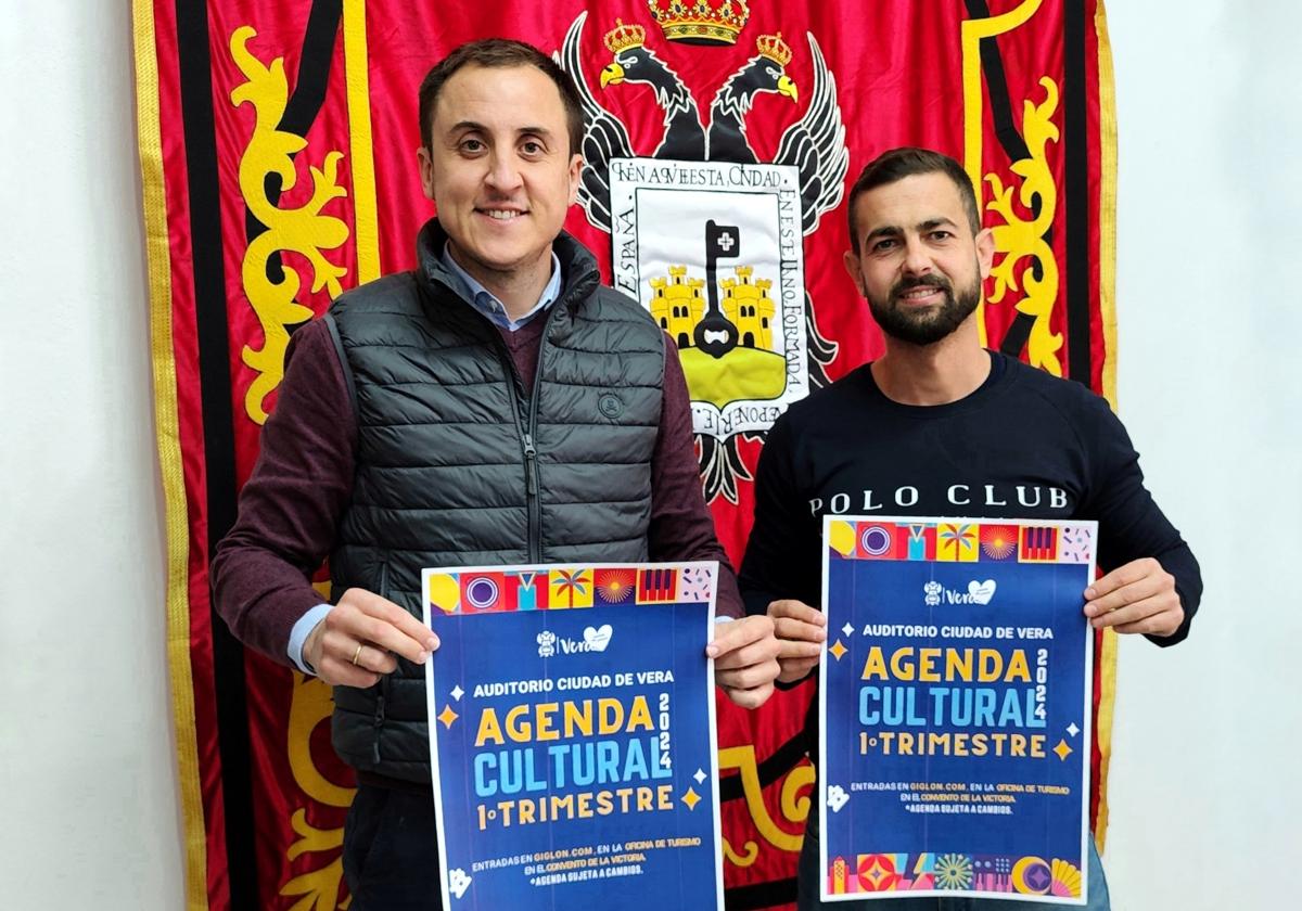 El alcalde de la localidad Alfonso García Ramos y el concejal de cultura Antonio Jesús Soler Castaño, muestran su compromiso con una programación de calidad para todos los públicos y animan a participar y a disfrutar de esta amplia oferta cultural y de ocio, que acogerá el Auditorio de Vera, durante los meses de enero, febrero y marzo, con representaciones que incluyen música, artes escénicas, charlas formativas, humor y teatro.
